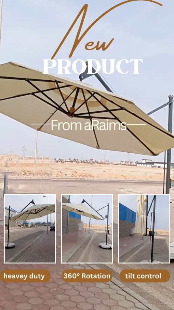 - الرياح: لو المكان معرض لرياح، اختار شمسية جانبية من تصنيع أرايمس، لأنها أقوى ومقاومة أكتر.
